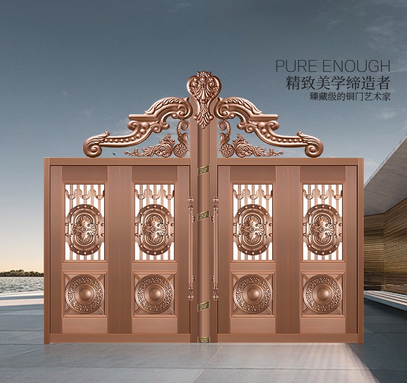 七熙铜门是一家集生产、研发、设计、销售和售后服务于一体的现代型企业。 公司立足于博大精深的中国文化基石上,放眼未来建筑装饰趋势,不断开拓创新,依托精良的生产技术装备,雄厚的经济实力,已经成为铜门领域中展翅高翔的雄鹰 。公司生产的豪华铜艺门,选用高纯度专用铜材料,内衬优质镀锌钢管焊接的网状骨架,两面再覆高强度镀锌钢板,防盗性能卓越。表面处理采用进口材料与国际先进工艺,使其着色自然、光亮、恒久,于豪华气质之上......